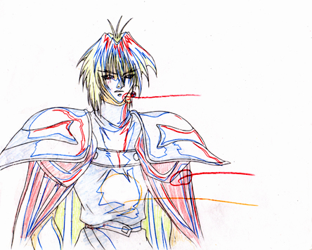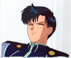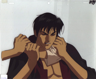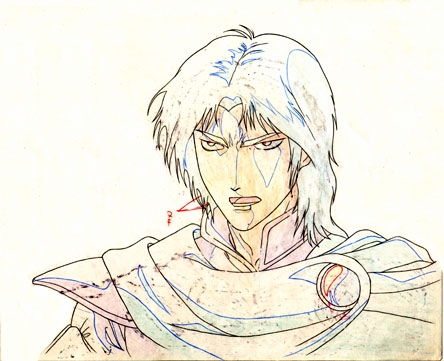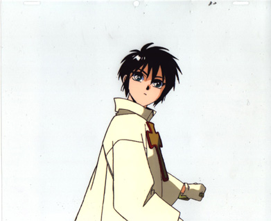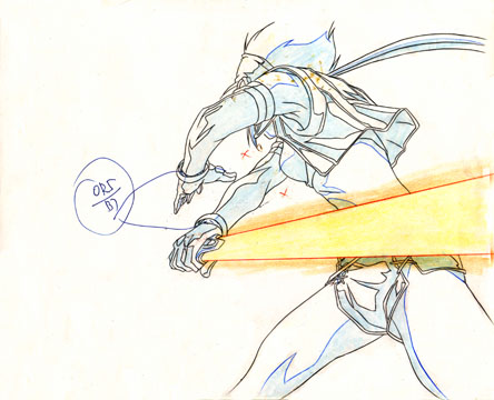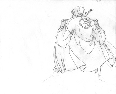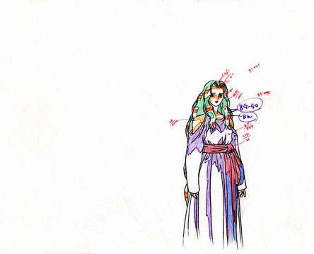 ![]() Fushigi Yuugi OAV It's Tamahome vs Taka... and Taka don't look so good. ... double your pleasure, double your fun... Key Master set-up with three layers and matching background. Layout sketch for sequence cel $120