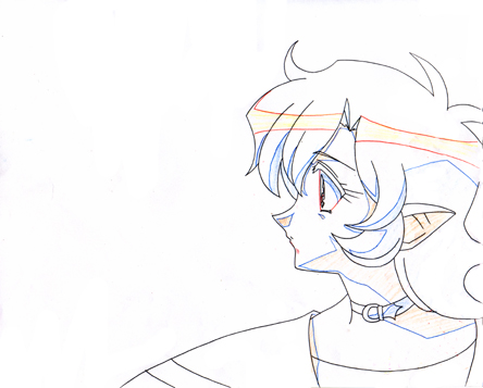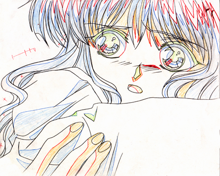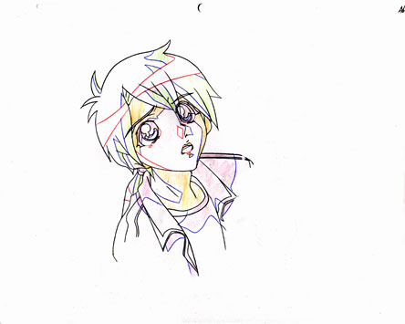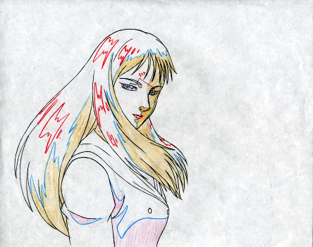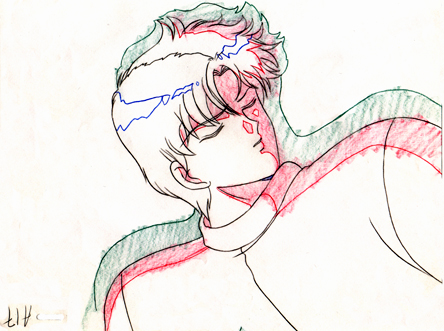 ![]() Ai no Kusabi Riki getting jumped at beginning of OAV 1 and about to be rescued by Iason. Sketch of Riki's eyes from sequence $100 SOLD
