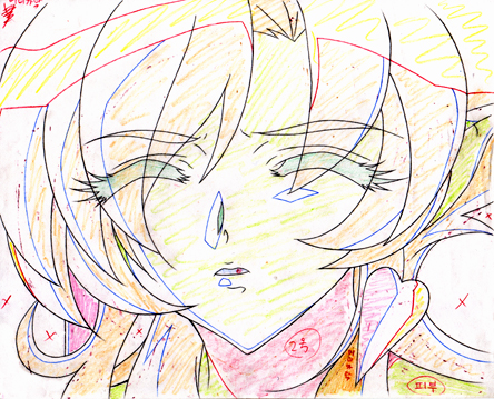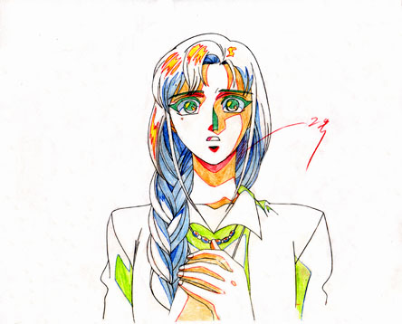 ![]() Akazukin Cha Cha OAV Shiine from the introduction to the first Akazukin Cha Cha OAV. Cel is regular sized but was used as a vertical pan in the OAV. Neck area of sketch is scraped Sketch was scanned in using gray scale, but is actually colored. $35